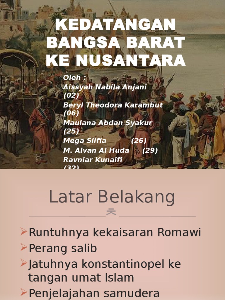 Di mana tujuan lain tersebut. Christophorus columbus dari lisbon berlayar kearah barat menyeberangi samudra atlantik. Latar belakang kedatangan bangsa barat. Kemajuan pengetahuan dan teknologi seperti kapal, kompas, dan meriam. Latar belakang, sebab, tujuan, rute, negara. Deskripsikan dan jelaskan rute perjalanan bangsa portugis spanyol. Secara umum, kedatangan bangsa eropa ke asia termasuk ke indonesia dilandasi keinginan mereka untuk berdagang, menyalurkan jiwa penjelajah, dan menyebarkan agama. Agar bisa lebih memahami perjalanan bangsa barat yang datang ke indonesia maka bisa dilihat dari kegiatan berikut ini ! Rute pelayaran yang diambil mengikuti rute columbus pada pelayaran sebelumnya. Ini akan saya poskan gambar peta kedatangan bangsa barat ke indonesia untuk memenuhi tugas ip. Download as docx, pdf, txt or read online from scribd. Kedatangan bangsa barat ke indonesia. Demikian pembahasan tentang kedatangan bangsa barat ke indonesia: